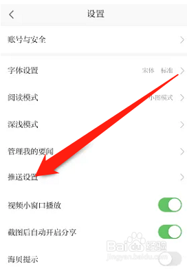 2、进入之后,选择点击推送设置。如图所示