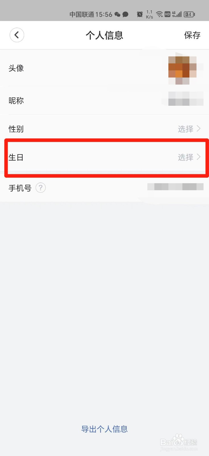 3、进入新的页面后,点击生日进入