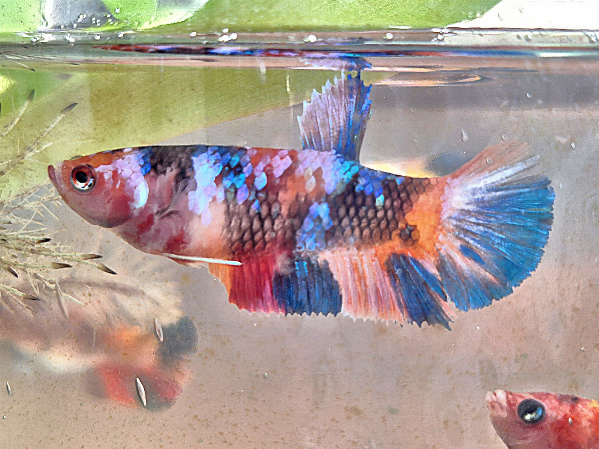 斗鱼界的明星,经过人工培育,品种繁多,雄鱼的鳍长而飘逸,颜色五彩斑斓